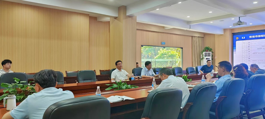 会上蒲鹏程对省外招生情况做了总体报告:六月以来,招生处组织招生宣传团队20多人次,奔赴全国十余省份。在河北、安徽、新疆、内蒙古、等省份开展高强度集中宣传。面对地域辽阔、交通不便及地方政策差异等挑战,多路教师协同作战,力求宣传实效。