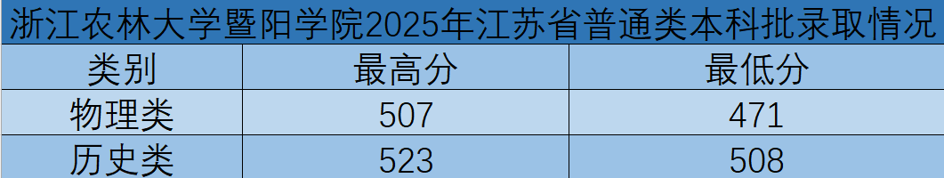 浙江农林大学暨阳学院2025年江苏省普通类本科批首轮录取工作已结束。