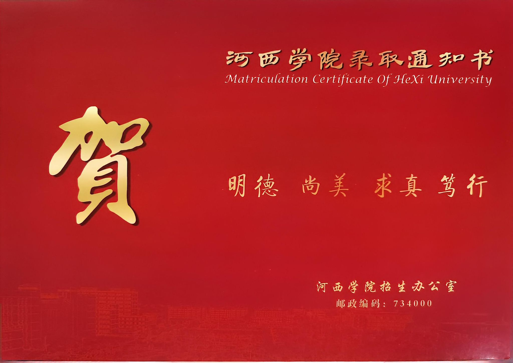 河西学院2025年普通高考招生甘肃省普通类提前批(A段、H段)、吉林、提前批种子科学与工程专业及甘肃、贵州、河北、河南、湖南、江西、辽宁、内蒙古、宁夏、山东、山西、新疆、重庆、广东、天津、江苏等省份足球运动专业录取通知书已经发放,请各位同学搜索“河西学院智慧招生”微信小程序登录“单号查询”栏目查询快递单号,可通过EMS官网或微信公众号/小程序/手机APP、支付宝生活号/小程序、国务院客户端小程序等跟踪录取通知书邮寄信息,了解邮寄轨迹,确保及时查收。请保持电话畅通,以便邮递员联系派送。联系方式有变的同学请及时联系学校更正,以便顺利收取通知书。