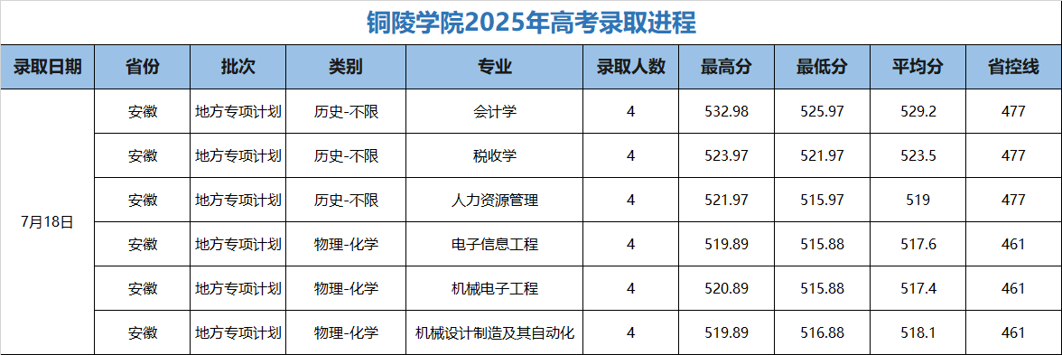我校2025年安徽省地方专项计划录取工作圆满完成,详细录取情况见附表。