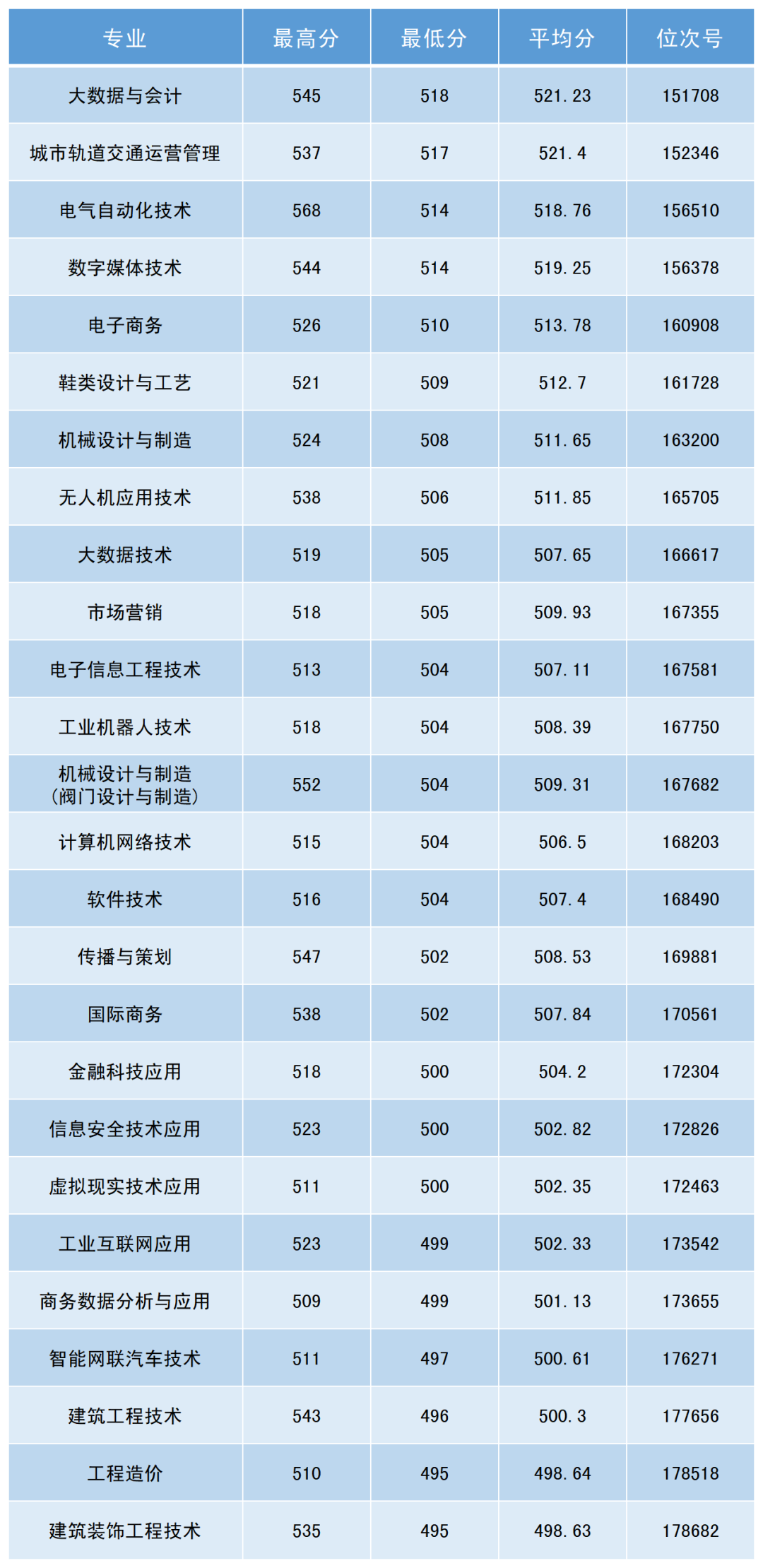 学校实行宽松的转专业政策,充分尊重学生意愿,允许学生进校第一学期末根据学籍管理规定申请转专业。建议分数在普通类二段线以上的考生大胆填报我校还有剩余计划的专业,并尽量靠前填报。
