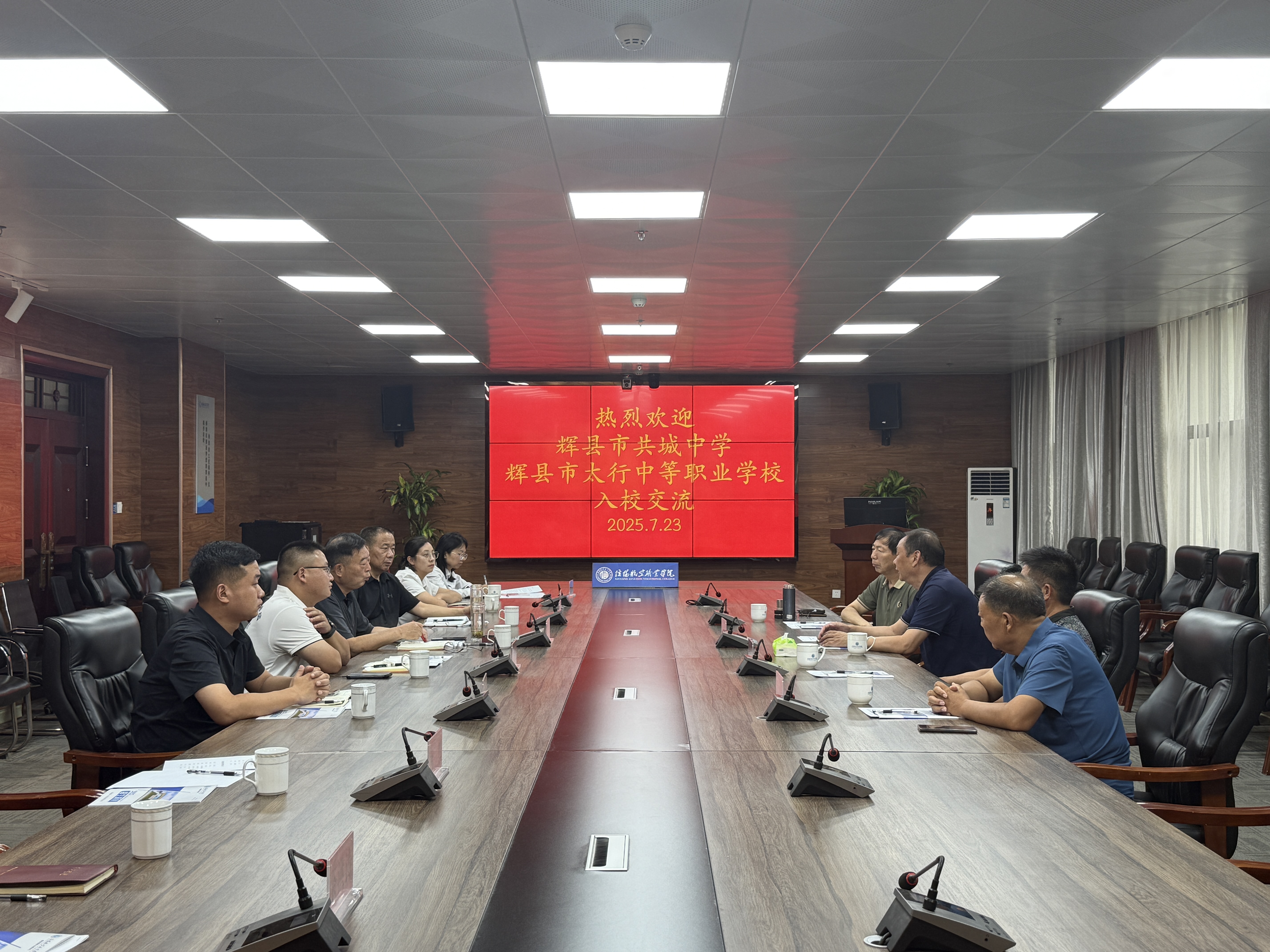 辉县共城中学、太行中等职业学校校长郝尚武介绍了该校的办学历史、生源情况及专业特色,并对我校的办学成果表示赞赏。董事长张立峰分享了辉县两所学校的办学模式与发展历程,双方就职业教育人才培养、专业对接、资源共享等议题进行了热烈讨论。
