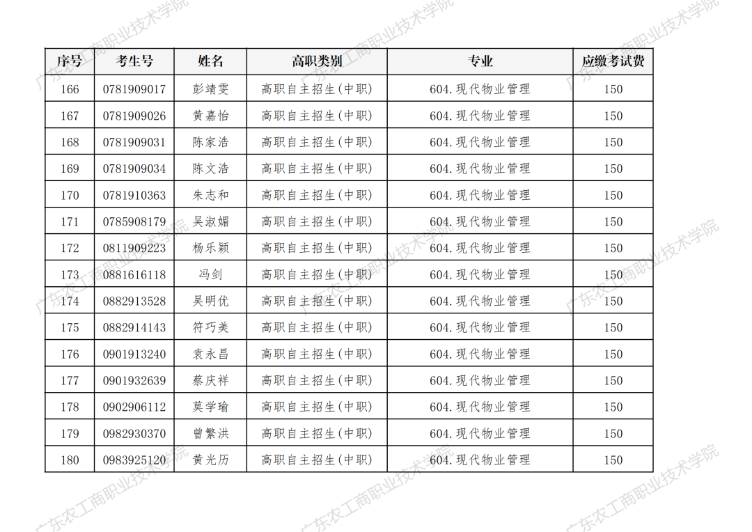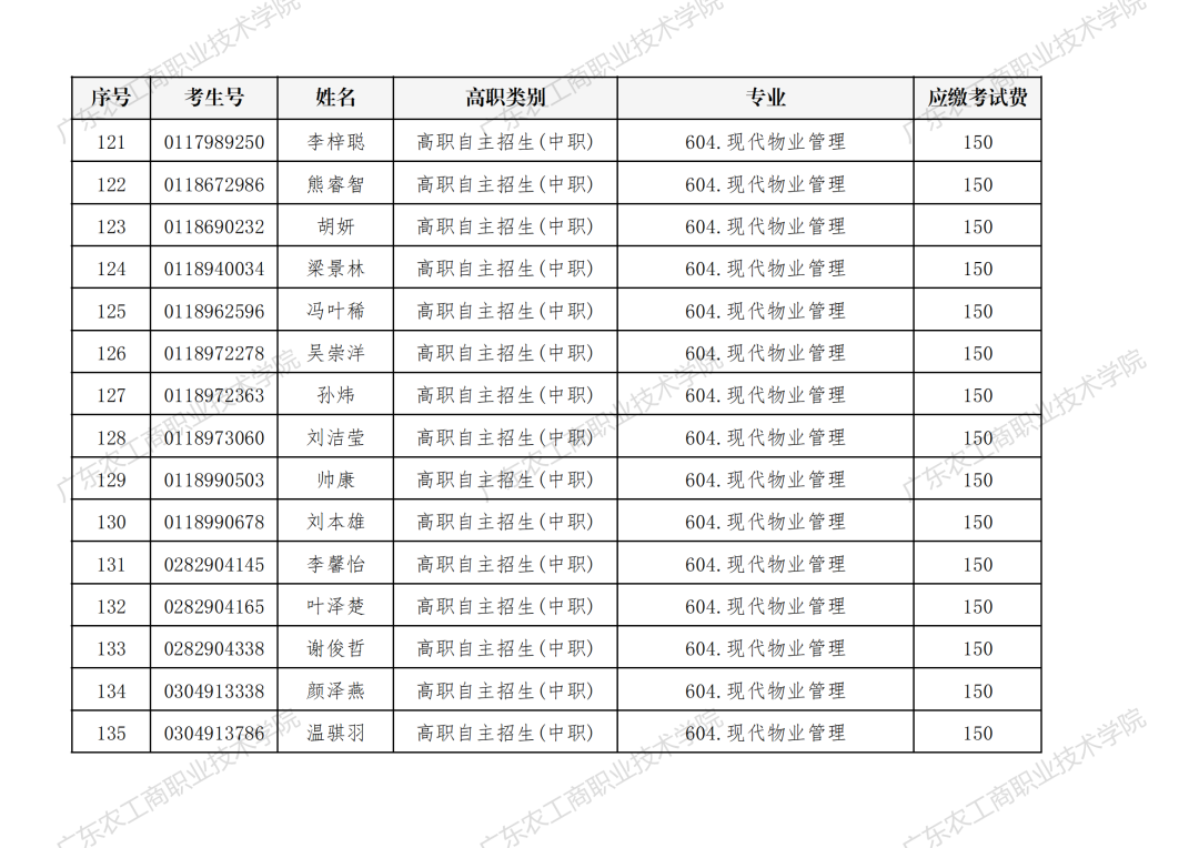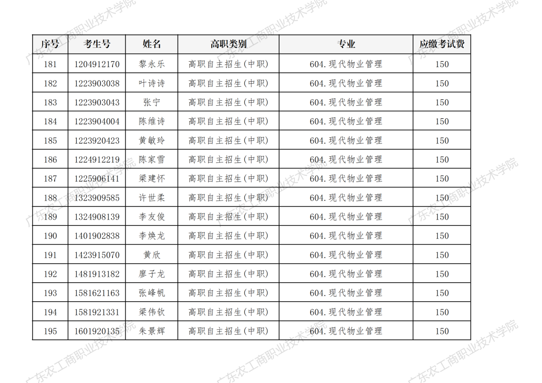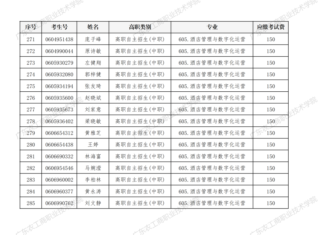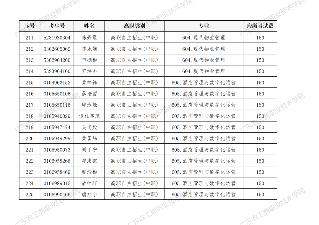 依据《广东省教育厅 广东省退役军人事务厅关于做好2025年高等职业院校自主招生工作的通知》(粤教考[2025] 11号)文件精神,根据我校2025年自主招生简章公布的有关要求,按规定对考生报考资格做了严格的审核。审核通过考生具体名单公布见下表,如有异议请在5月14日前向我校纪检室反映(时间:上午8:00—12:00,下午14:00—17:00),联系电话:020-85230949 李老师;招生就业处联系电话:020-85230071 吴老师。