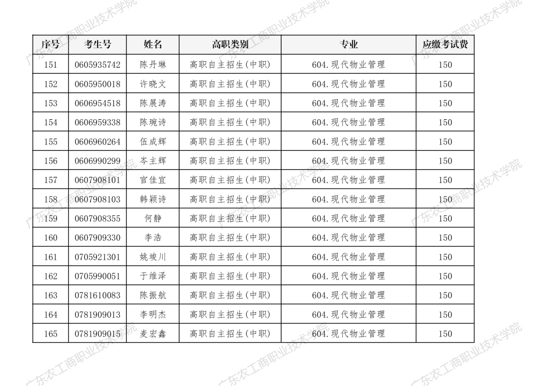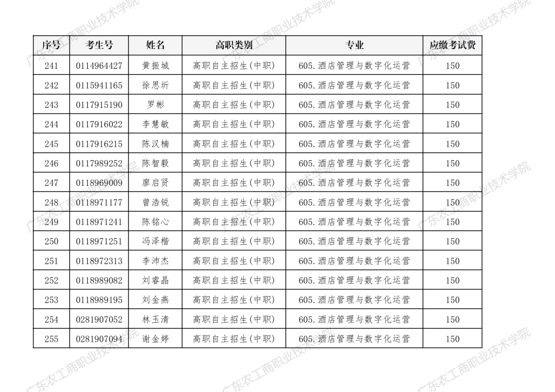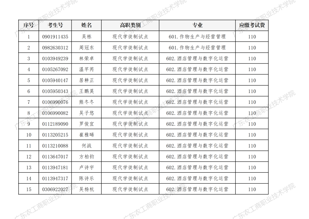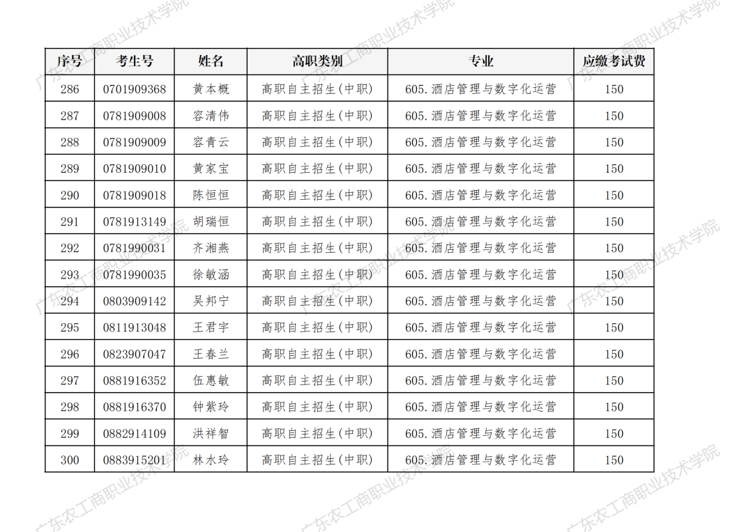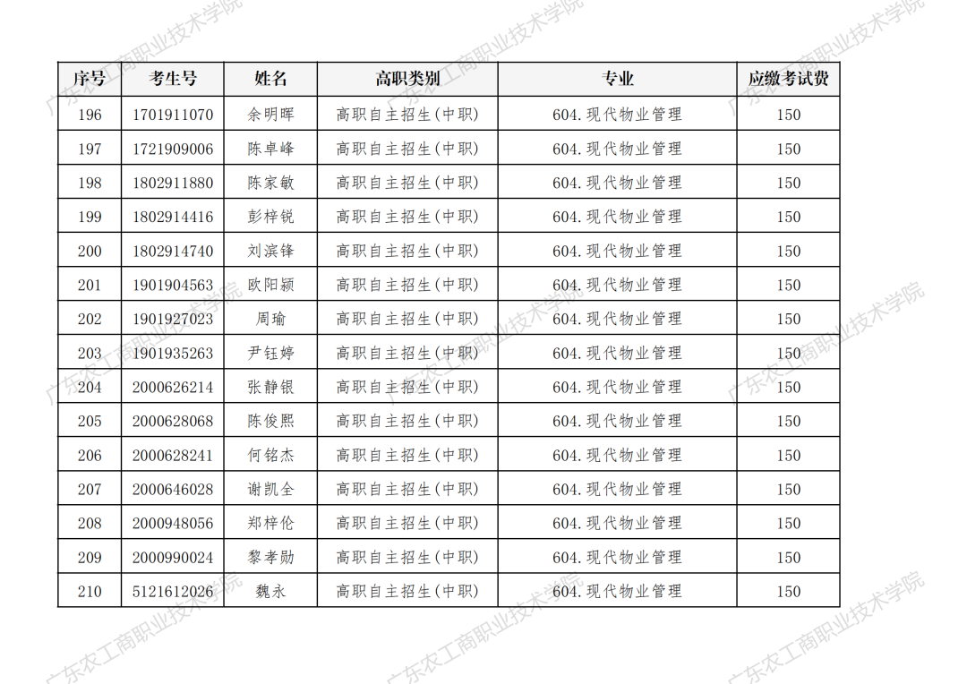 依据《广东省教育厅 广东省退役军人事务厅关于做好2025年高等职业院校自主招生工作的通知》(粤教考[2025] 11号)文件精神,根据我校2025年自主招生简章公布的有关要求,按规定对考生报考资格做了严格的审核。审核通过考生具体名单公布见下表,如有异议请在5月14日前向我校纪检室反映(时间:上午8:00—12:00,下午14:00—17:00),联系电话:020-85230949 李老师;招生就业处联系电话:020-85230071 吴老师。