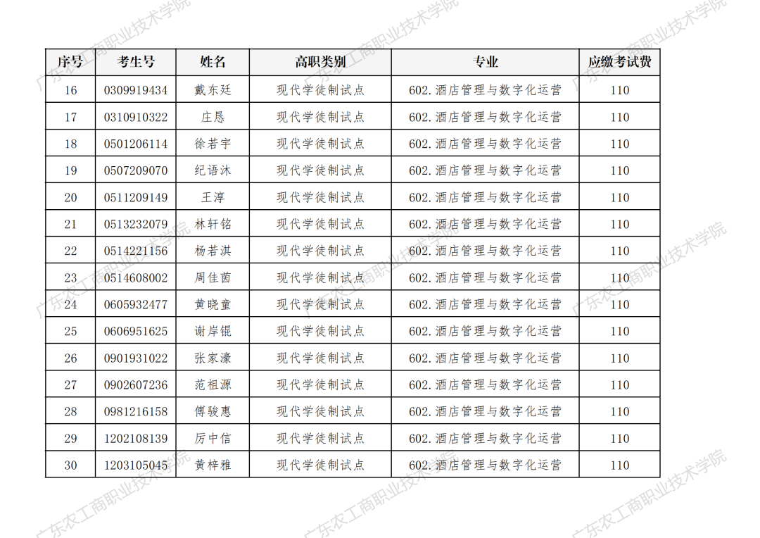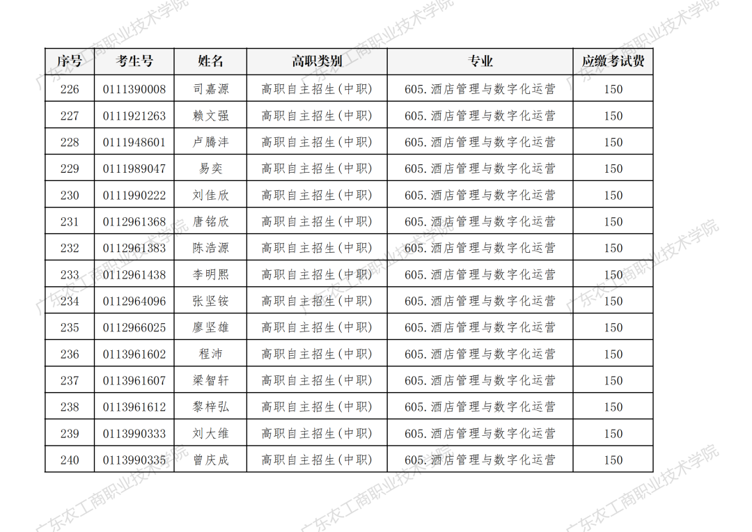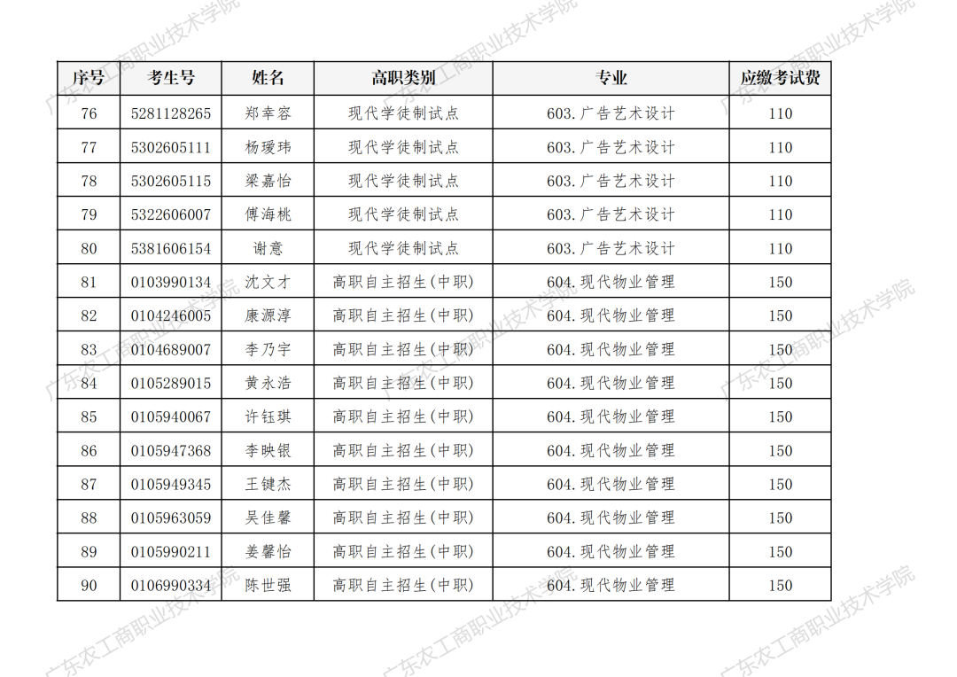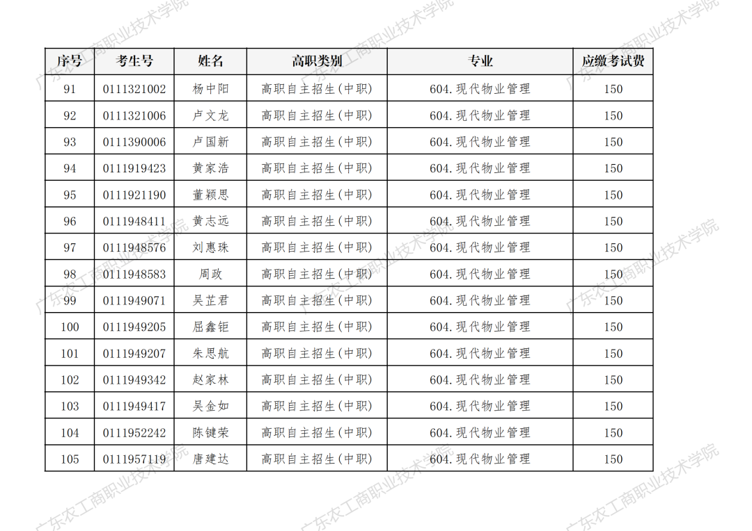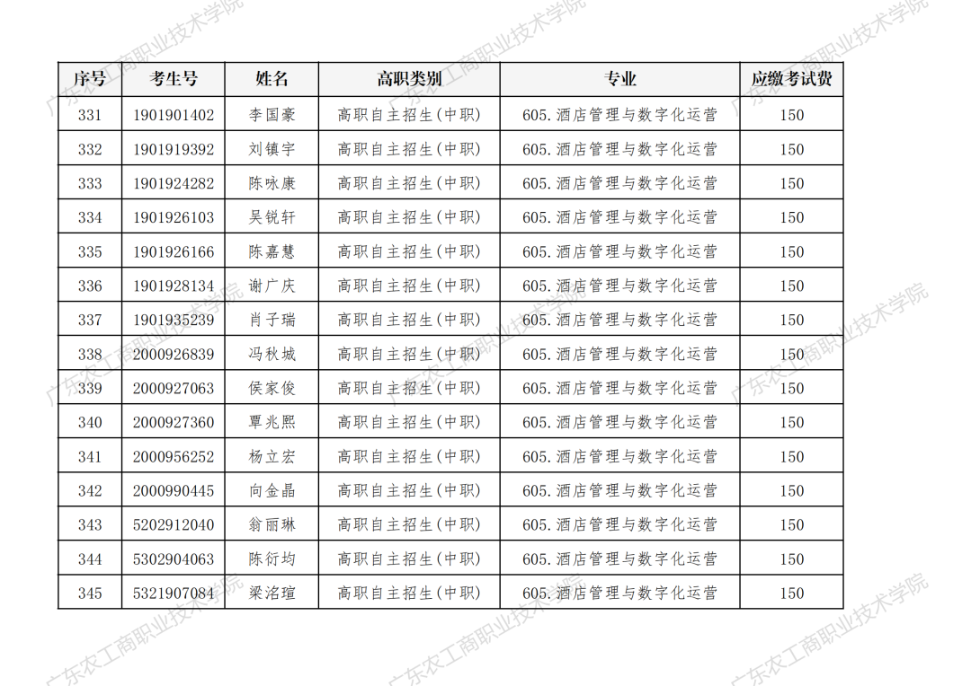 依据《广东省教育厅 广东省退役军人事务厅关于做好2025年高等职业院校自主招生工作的通知》(粤教考[2025] 11号)文件精神,根据我校2025年自主招生简章公布的有关要求,按规定对考生报考资格做了严格的审核。审核通过考生具体名单公布见下表,如有异议请在5月14日前向我校纪检室反映(时间:上午8:00—12:00,下午14:00—17:00),联系电话:020-85230949 李老师;招生就业处联系电话:020-85230071 吴老师。