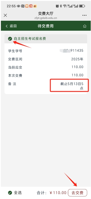 通过我校自主招生报考资格审核的考生,从2025年5月12日至5月13日下午5点止,根据我校自主招生缴费指引完成缴费,未在规定时间完成缴费视为放弃报考资格,未缴费,不能参加考试,缴费后不办理退费,请谨慎操作,缴费详细指引见下文。