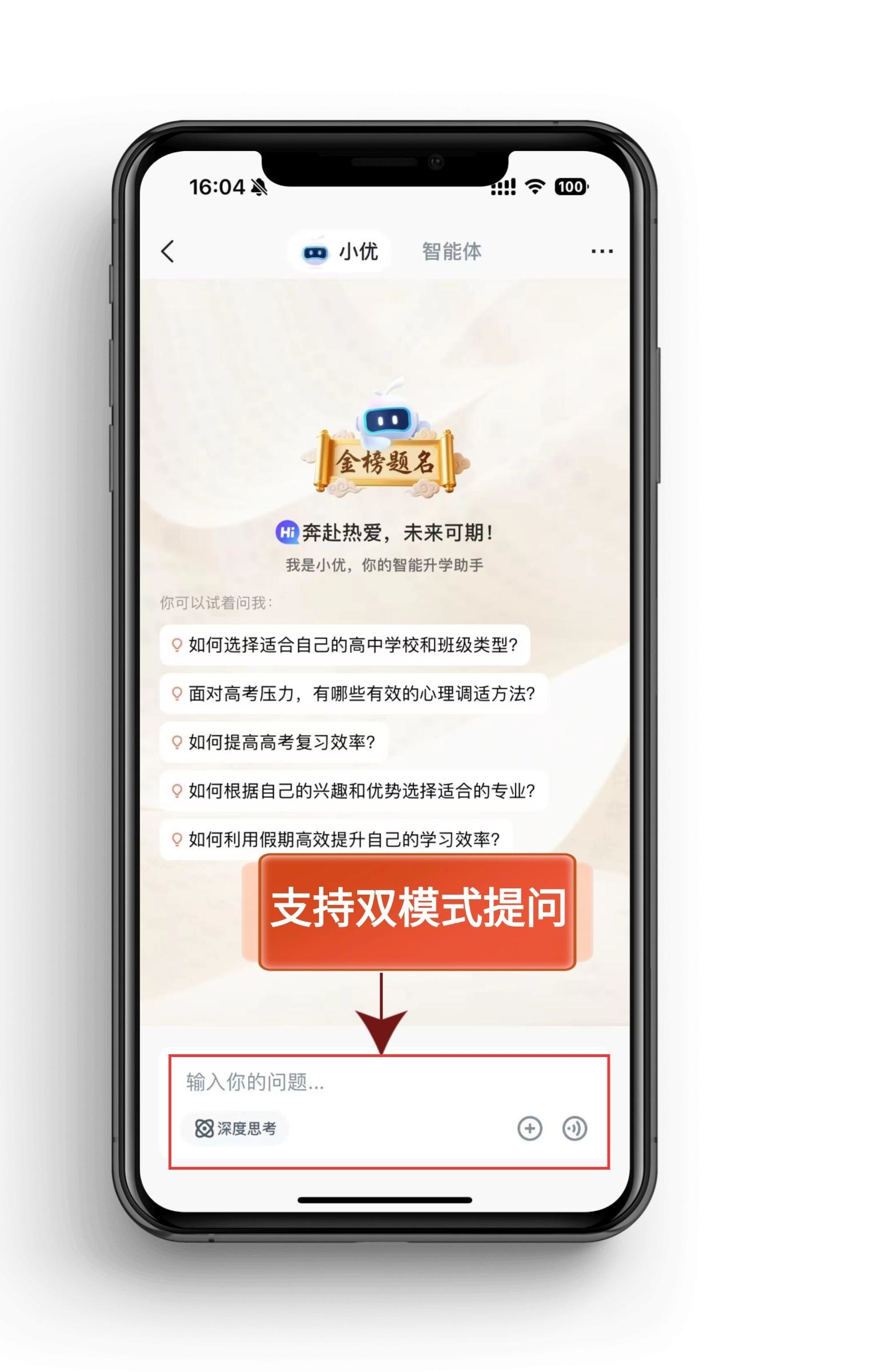 考虑到用户使用场景的多样性,"小优升学AI"支持语音与文字双模式提问:晨跑时可通过语音询问"今年强基计划报名流程",晚自习后用文字详细咨询"某高校转专业政策"。这种设计让信息获取突破时间与空间限制,无论是通勤路上还是睡前十分钟,都能快速解决升学疑问。