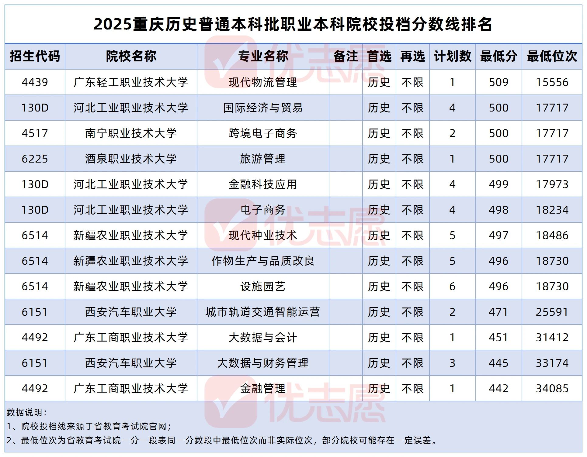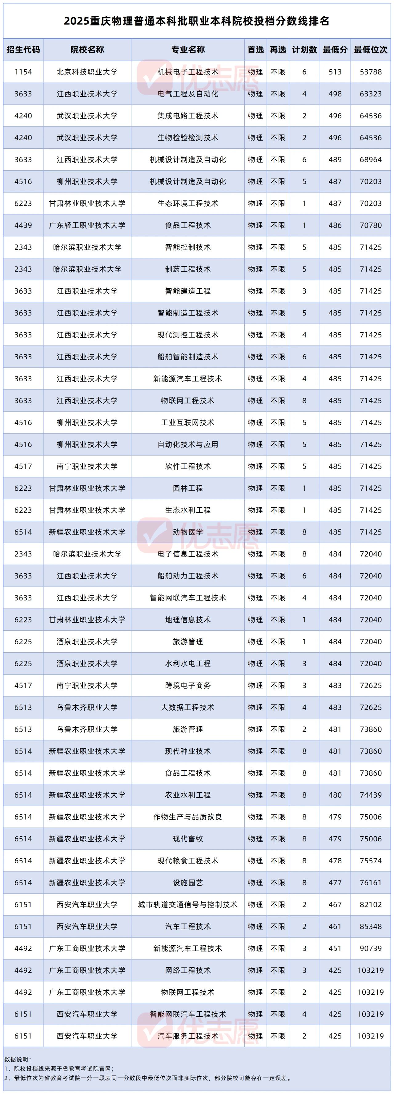 2025年重庆普通本科批新增职业本科院校的投档线表现不容忽视,物理类最高超出本科线88分,历史类最高超出71分。这一现象的背后,是产业需求、教育改革与社会观念转变共同作用的结果。重庆正聚焦“33618”现代制造业集群体系,在智能网联新能源汽车、新一代电子信息等产业重点突破,对高层次技术技能人才的需求十分旺盛,而新增职业本科院校的专业设置与本地产业高度契合,这正是吸引考生的核心竞争力,物理类中排名前三的职业本科院校专业就清晰体现了这一点。