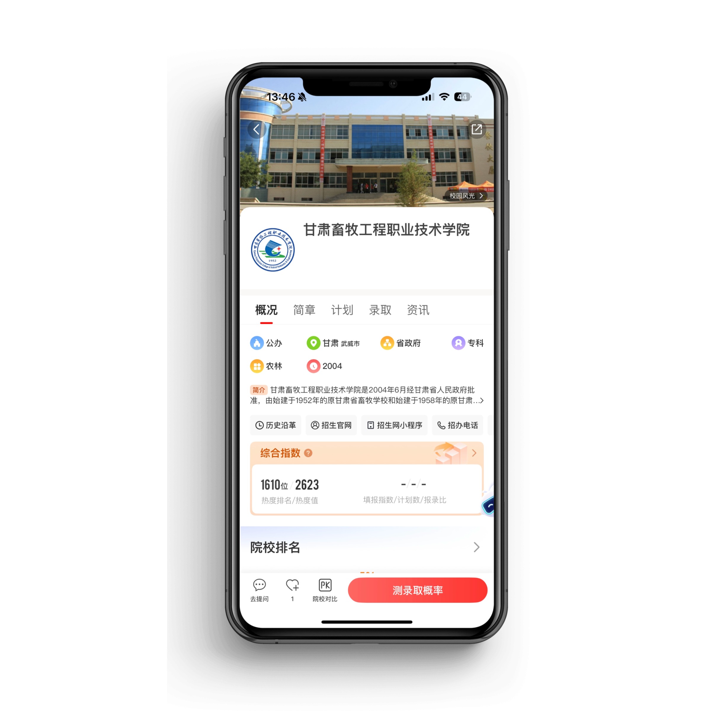 甘肃畜牧工程职业技术学院深厚的行业底蕴、先进的教学理念和紧密的产学研合作,使其成为众多学子投身畜牧兽医事业、实现职业理想的优质选择。希望有志于该行业的学子能在此找到成长之路,为推动行业发展贡献力量。想要了解更多院校信息,可以下载优志愿APP,一键解锁海量院校数据、智能推荐适合你的志愿方案,还能获取最新录取分数线、专业就业趋势分析等实用信息。