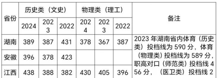 二、湘中幼专近三年高考录取投档线