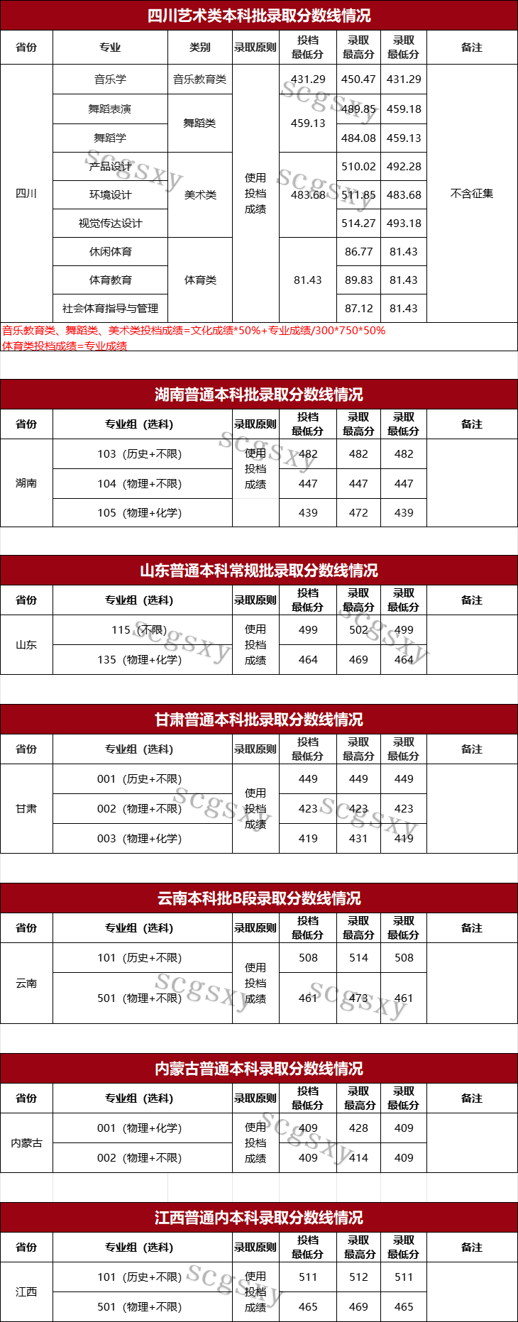 我校严格实施招生录取工作“阳光工程”,始终坚持“公开、公平、公正”的原则选拔人才,经过招生与就业部对进档考生进行全面、认真的审核,圆满完成了四川艺体类本科批,湖南、山东、甘肃、云南、内蒙古、江西普通本科批的招生录取工作。相关录取信息已公布,请广大考生及时查询。