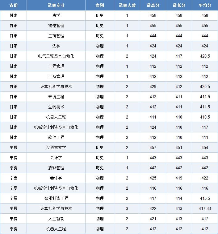 我校2025年甘肃省、宁夏回族自治区普通类招生录取工作已于今日顺利完成,具体录取情况如下: