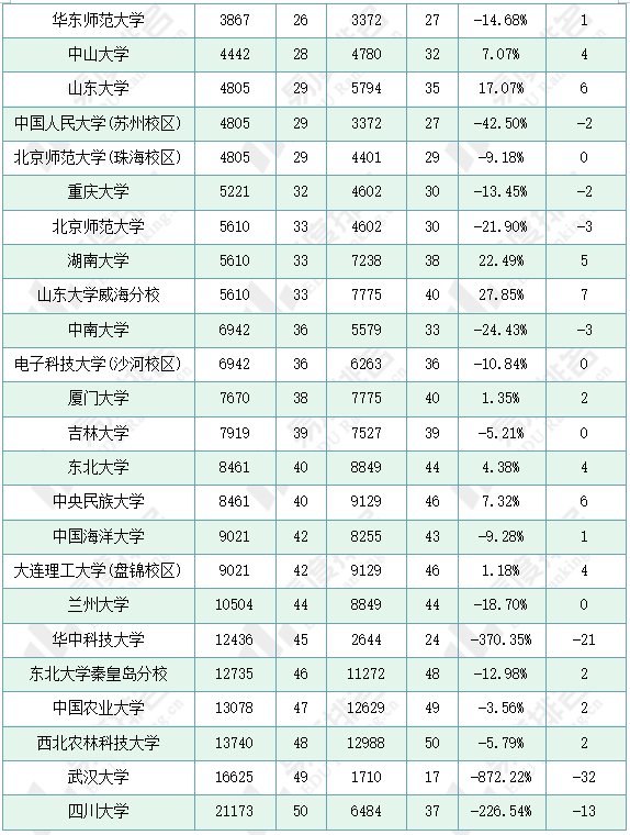 4.武大、川大投档位次下滑严重,在985院校中排名倒数
