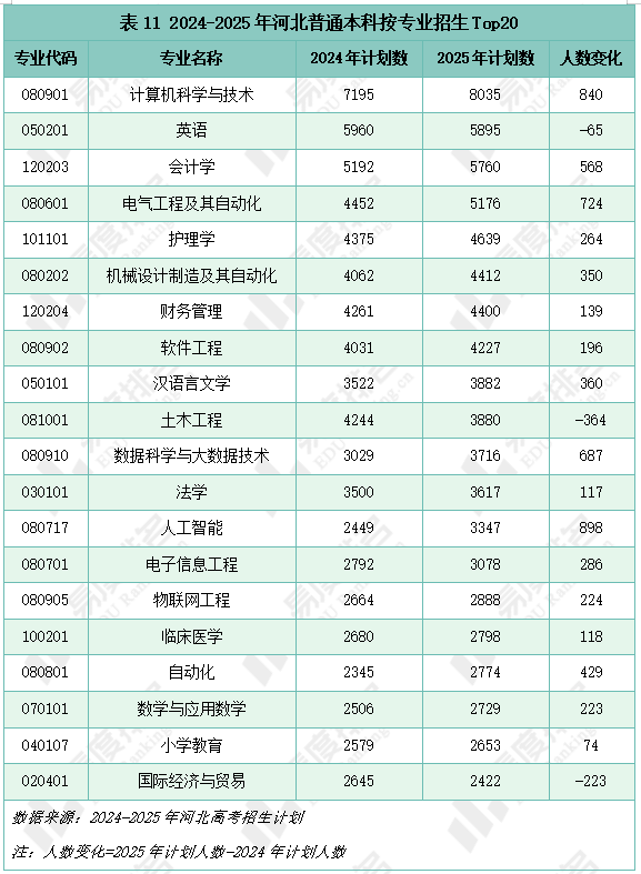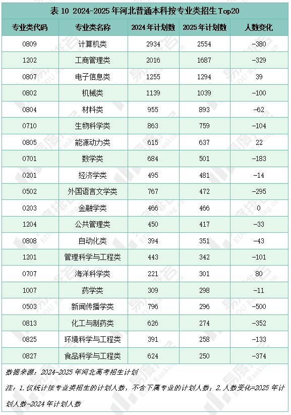 今年招生计划数前20的专业类中,有16个专业类计划人数较去年减少,其中