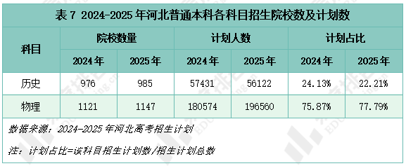 7.历史科目招生计划减少,而物理科目招生计划大幅增加