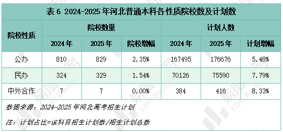 今年公办、民办院校数量均有增长,中外合作院校则维持7所不变。公办院校计划人数达到17.67万人,较去年增长5.48%,民办院校计划人数达到7.56万人,较去年增长7.79%。