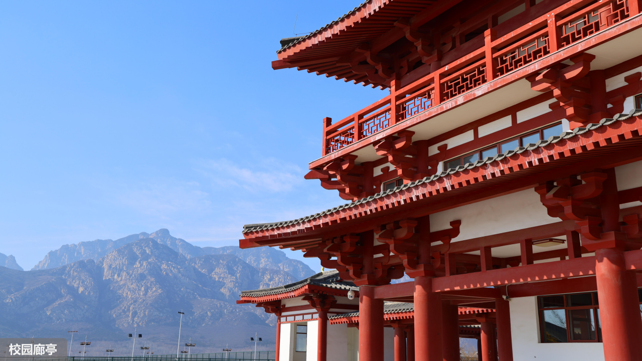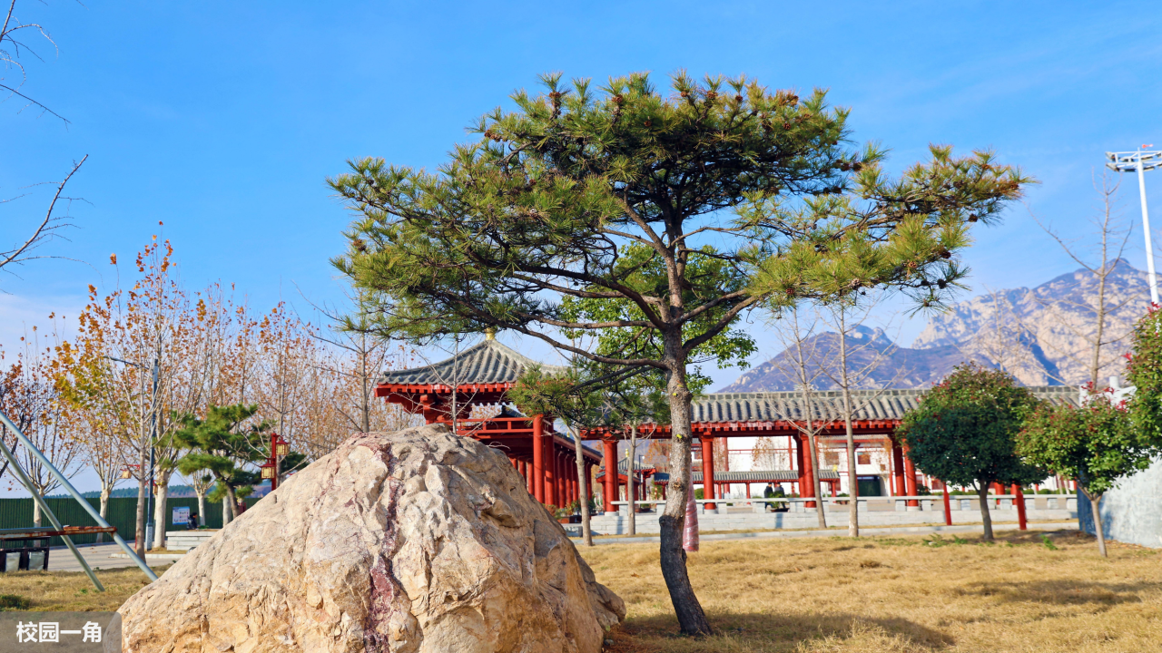 学校坐落于中岳嵩山脚下,环校皆是连绵起伏的山峦,举目四望,皆是美景。校园内红瓦白墙的建筑错落有致,别具一格,与蓝天碧树交相辉映,风光旖旎,随手一拍,皆是令人惊叹的绝美画面。