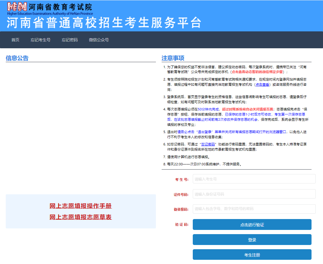 在考生登录区域输入自己的考生号、证件号码、登录密码和验证码,点击登录,登录普通高招服务平台。