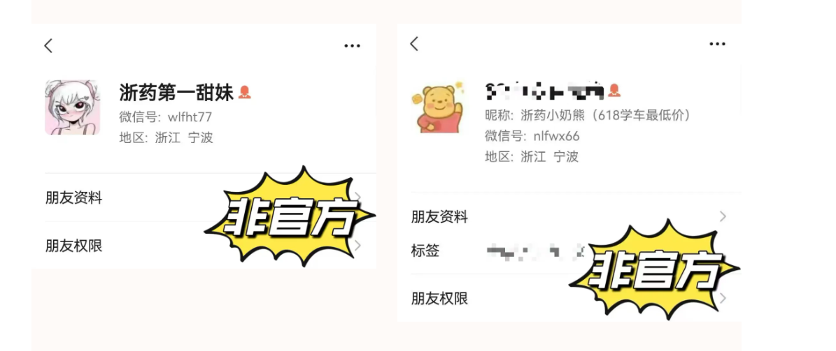 1.上述盗用校名校徽、冒充官方信息进行商业牟利行为,均未经我校任何形式授权。由此产生的一切法律后果及经济纠纷,均与我校无关。 2.请广大考生和家长提高警惕、树立安全防范意识、切勿进行网上转账,以免上当受骗。 3.“浙江药科职业大学”校名(包括“浙江药科”“浙药大”“浙药”等简称)、校徽,系浙江药科职业大学无形资产,学校对校名、校徽等标志性符号享有相应合法权益。未经学校授权或许可,任何单位和个人无权使用“浙江药科职业大学”校名(含简称)及学校校徽、标志性场景等标识冠名或经营自媒体,或者从事商业、产品、商品、技术、成果、办学的宣传、销售和推广等经营性活动。对于任何未经授权擅自使用造成学校名誉权或其他权益受损的,学校将依法依规追究其法律责任。 4.各类非我校官方账号应立即停止侵权行为,禁止在任何平台冒充学校官方账号发布信息或开展相关咨询活动。已经发布的信息请立即删除,组建的各类群组立即解散,相关的直播咨询等网络行为立即停止,消除影响。如考生或家长上当受骗、经济受损,发布信息者将承担法律责任。