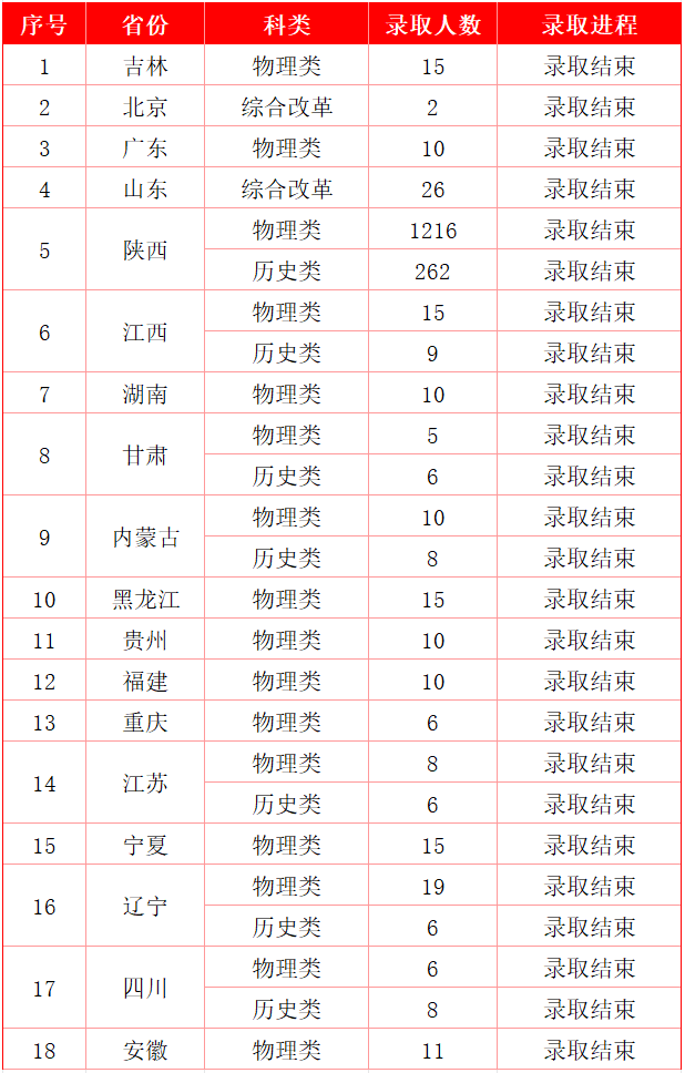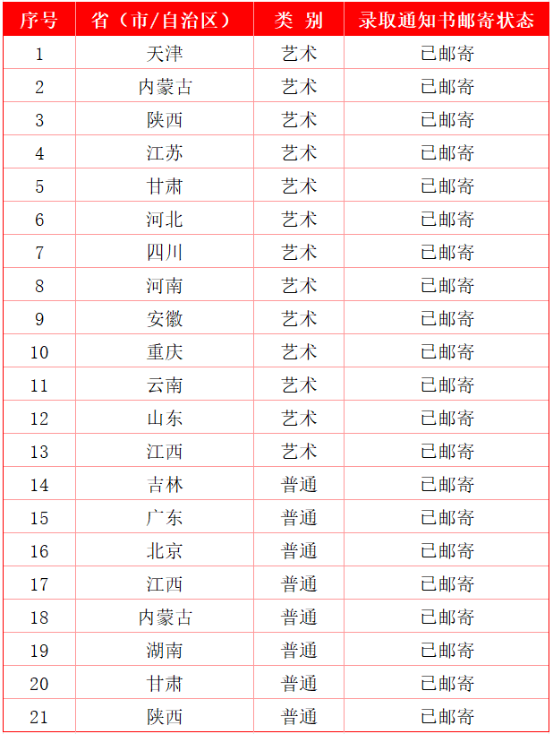 同时,陕西省普通类等多个省份的录取通知书现已邮寄,详情请见下表: