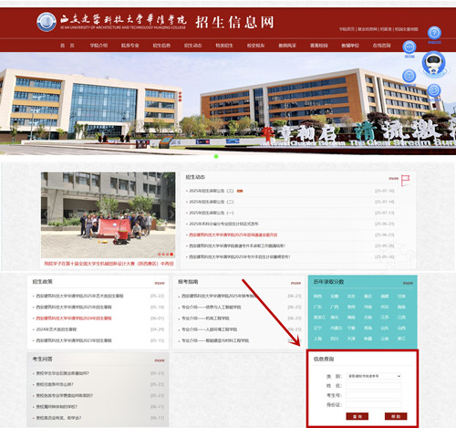 (1)关注“西建大华清招生与就业服务中心”微信公众号,并进入公众号。点击左下角“招生”栏目,打开“录取查询”选项。