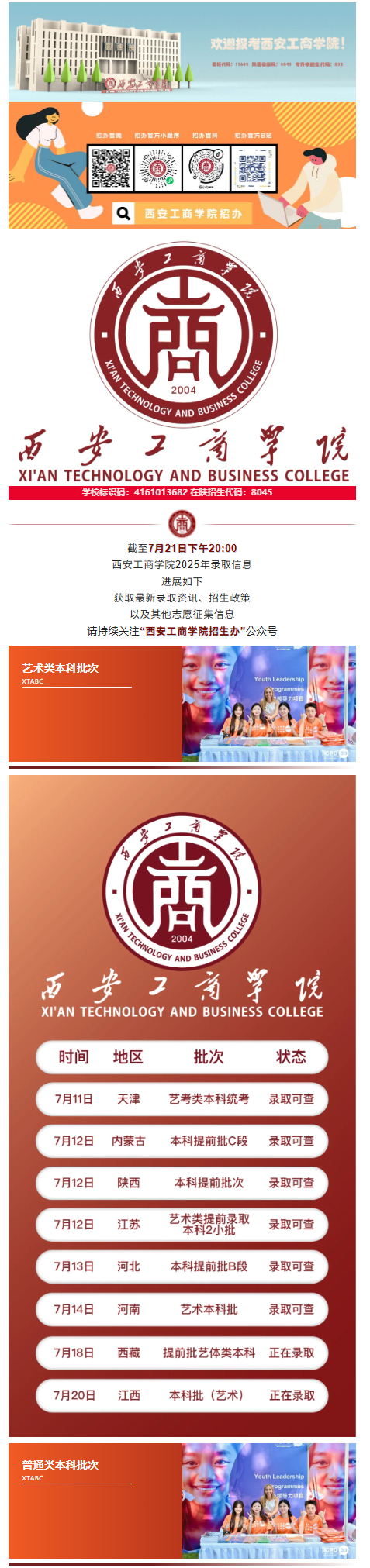 西安工商学院2025年录取进程Ⅲ(7月21日)