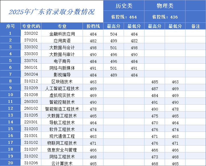 江西软件职业技术大学在广东省本科录取情况公式(持续发布)