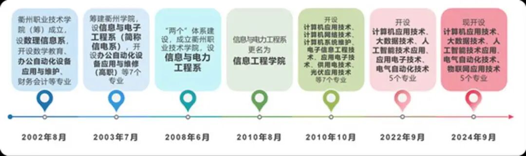 信息工程学院办学历史起于2002年8月,现设有计算机应用技术、大数据技术、人工智能技术应用、电气自动化技术、物联网应用技术五个专业,现有在校生1500余人。学院始终坚持“学生中心、成果导向、持续改进”为核心的教育理念开展工作,面向长三角及浙闽赣皖四省边际以工业互联网技术为核心的数字经济智慧产业,立足信息技术赋能制造业,服务制造类企业“两化融合”转型升级,着力培养数字经济领域高素质复合型技术技能人才。