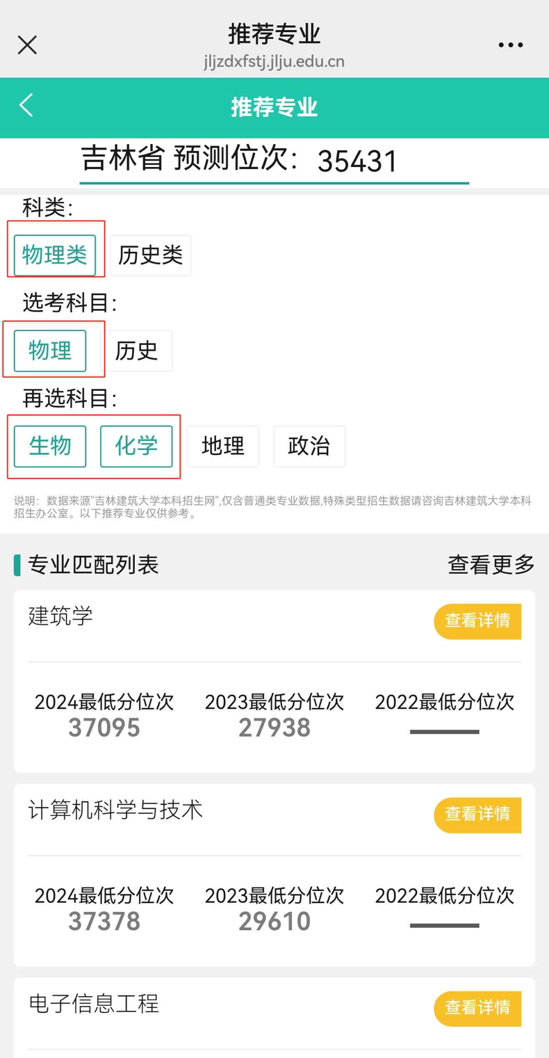 这个功能就像是你的私人报考“军师”,深谙你的需求!只需输入你的省份和预估分数,它便能依据吉林建筑大学历年在该省份各专业的录取分数线等大数据,运用先进的算法进行精确计算,迅速为你筛选出符合分数条件的专业。假设你是吉林省考生,预估分数为[X]分,便将这个分数段内你有机会被录取的专业进行展现,让你清晰了解自己在报考吉林建筑大学时的专业选择范围,志愿填报变得一目了然,成功率显著提升!