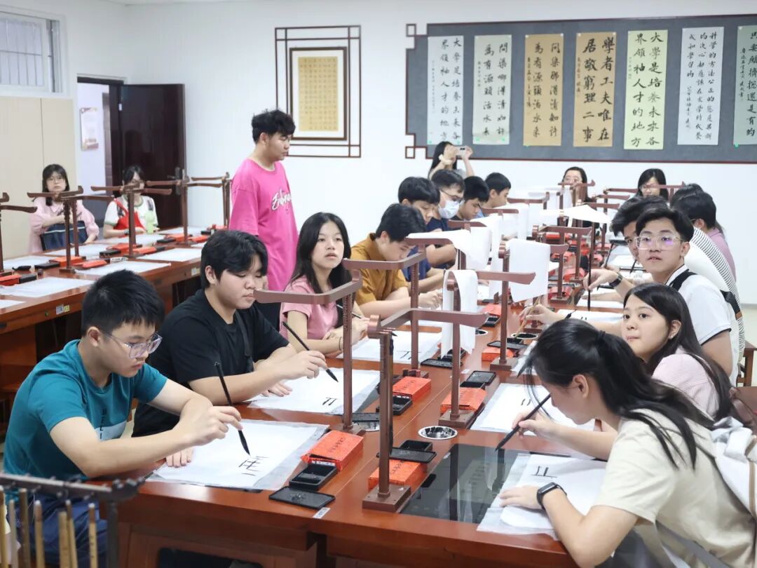 本次培训围绕书法和剪纸艺术展开,教师教育学院教师为印尼华裔师生讲解毛笔握笔姿势,演示书法运笔技巧,传授剪纸折叠、裁剪技巧,现场氛围热烈融洽。