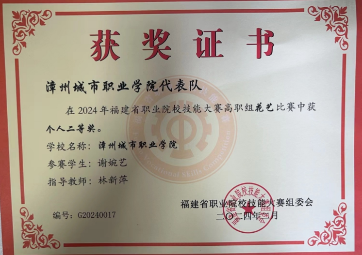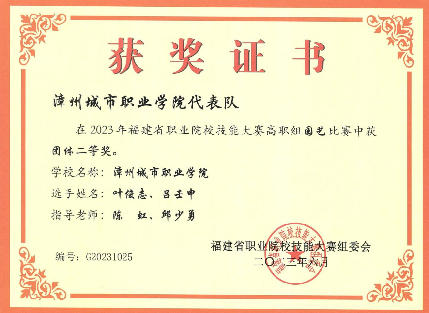 漳州城市职业学院生态景观学院现设有园艺技术、园林技术、花卉生产与花艺3个专业,其中园艺技术专业为中央财政支持专业建设项目,是福建省高素质农民专科学历教育和退役军人培训基地,教学成果项目《服务区域经济,创新园艺人才培养模式与实践》获得福建省教学成果二等奖。园林技术专业教学成果项目《高职园林三进三拓一融合人才培养模式创新与实践》和高素质农民专科学历教育教学成果项目《面向服务区域乡村振兴的高素质农民培养体系的构建与实践》均荣获漳州市教学成果一等奖。2024年12月21日,学院与福建农林大学、海峡生物科技股份有限公司牵头组建海峡两岸花卉行业产教融合共同体,助力两岸花卉产业交流合作。