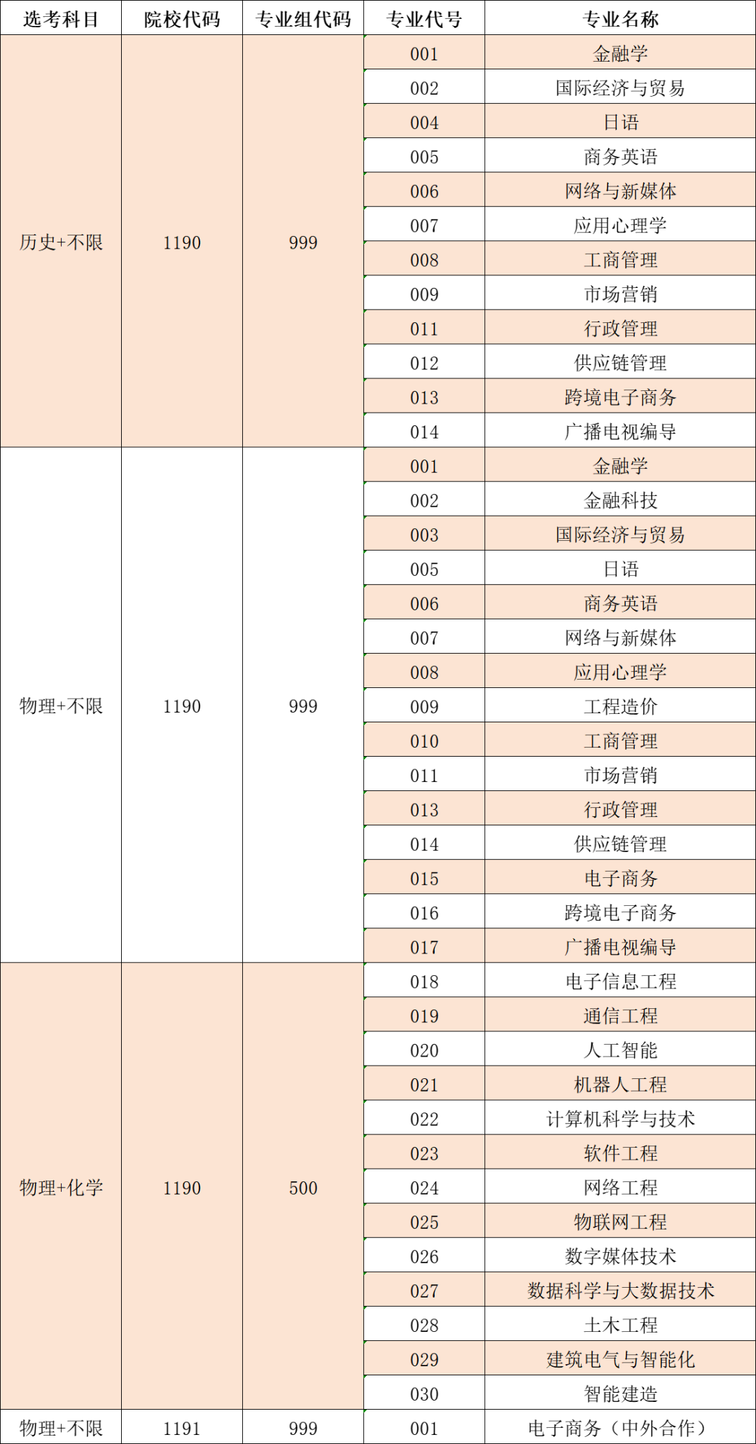 阳光学院2025年福建省普通类本科批次 第二次征求志愿报考信息