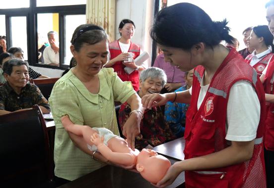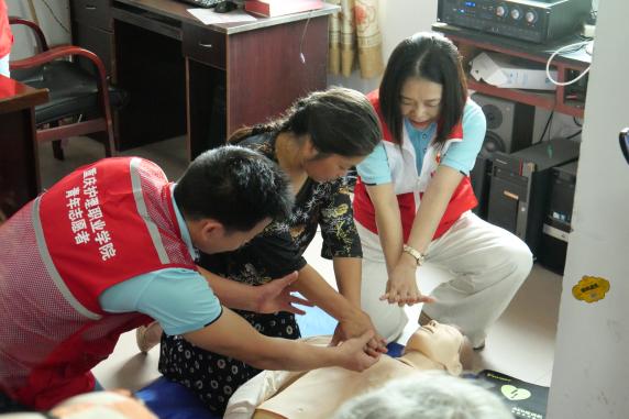 活动中,志愿者们充分发挥专业优势,采用“真人示范+互动体验”的方式,生动形象地讲解了海姆立克急救法等急救技能,使参与村民真正“听得懂、学得会、用得上”。活动现场,一位奶奶在培训之后激动地说:“这下娃儿吃东西卡住,我也晓得怎么救了!”