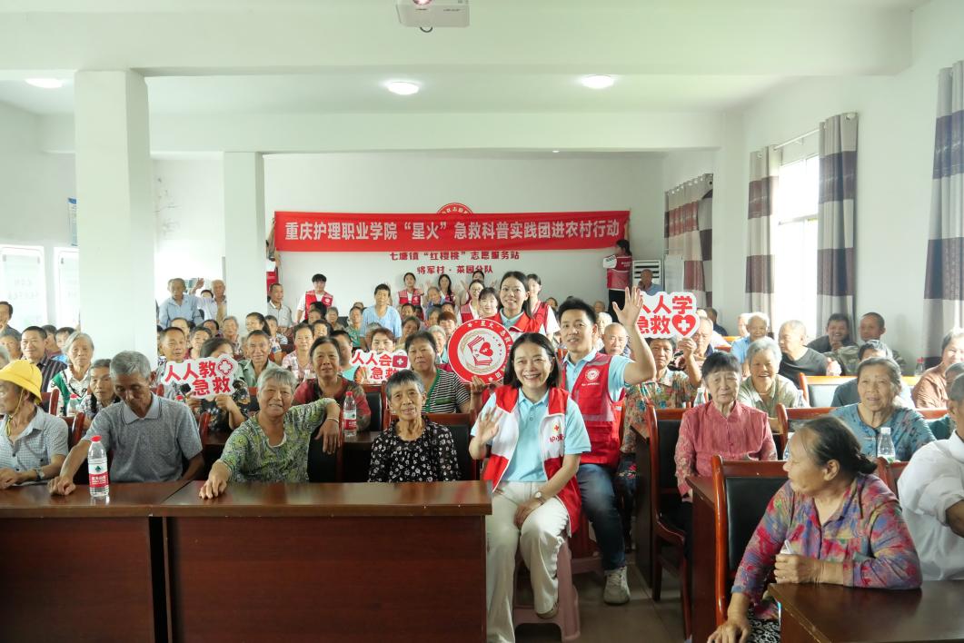 为弘扬“人道、博爱、奉献”的红十字精神,助力健康乡村建设,7月8日,学校红十字会组织“星火”急救科普实践团17名师生深入重庆市璧山区七塘镇将军村,开展“博爱护康”急救知识培训活动,共服务100余名村民。