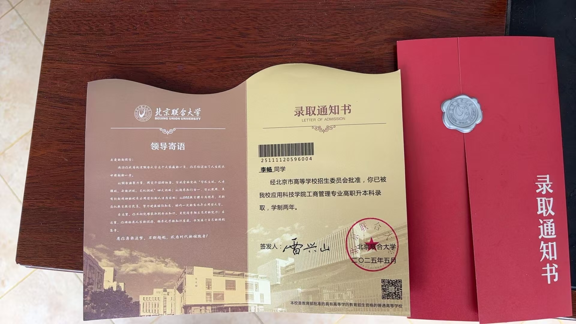 五年学习直通大专学历,学生专科毕业经学校推荐参加北京市高校专升本统一考试,成绩合格可直接升入北京联合大学学习,学制2年,毕业后获全日制本科学历,符合学位授予条件,可获得学士学位。2025年高职升本考试我校计算机应用技术、工商企业管理、现代文秘、戏剧影视表演五个专业录取率100%。