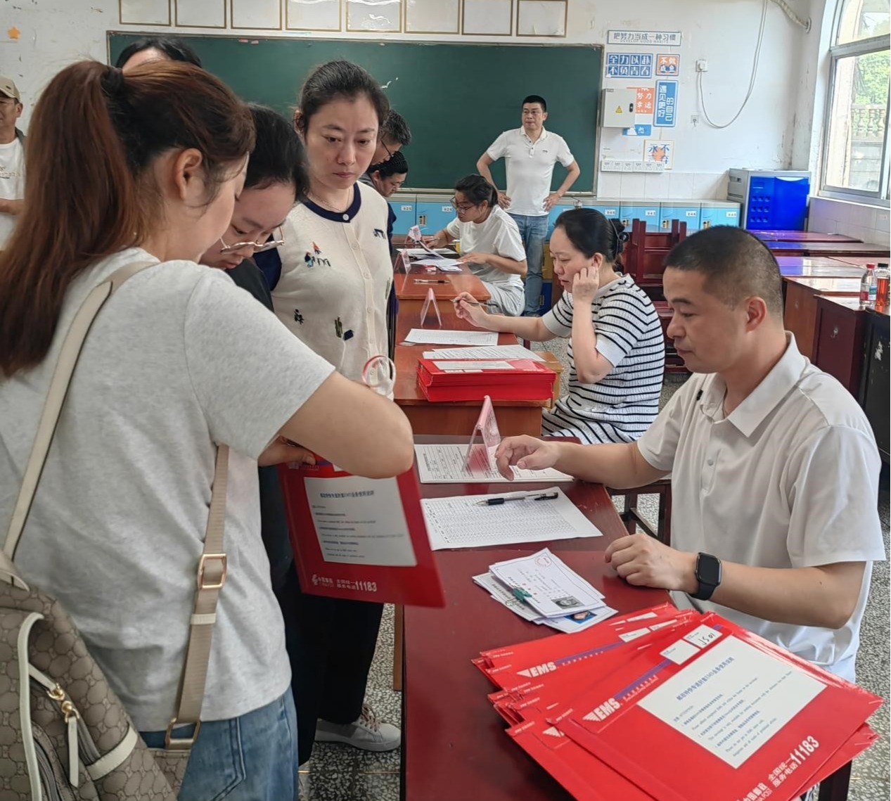 上午7时起,新生及家长们陆续抵达学校办理入学手续,凭准考证领取录取通知书、入学须知等材料。学校安排了教师提供指引服务,确保流程高效便捷。