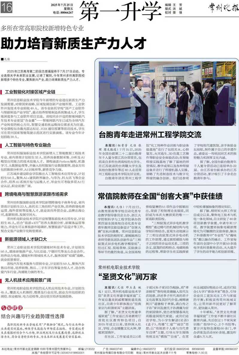 常州晚报·第一升学:多所在常高校新增特色专业,助力培育新质生产力人才