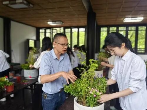 学生参加省产业教授于惠山古镇开展的锡派盆景实践教学