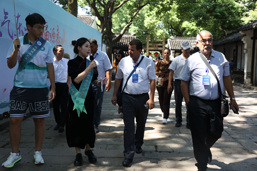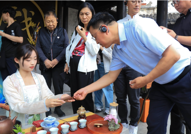 学生为世界中轴线文化遗产(香港)协会青年骨干国情研修班成员展示江南茶艺