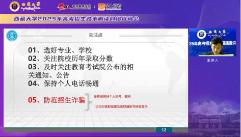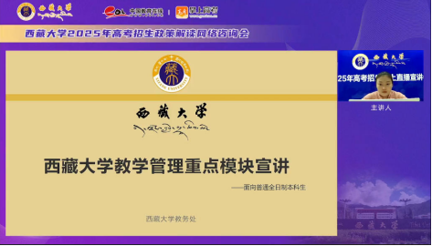 招生工作是学校人才培养的源头,优质的生源质量是学校发展的生命线。为了更好地宣传西藏大学的招生政策、志愿填报指导、学科专业、办学环境、优势特色,进一步提升学校知名度和影响力,吸引更多优质生源报考我校,在学校有关部门和各学院的大力支持下,通过中国教育在线平台于6月20日至26日开展了2025年本科招生考后直播宣讲活动。累计举办线上直播宣讲5场,累计观看人超过2.3万人,直播现场回复考生及家长各类问题达200余个。