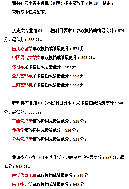 【录取快讯】我校在云南省本科批(B段)招生录取结束