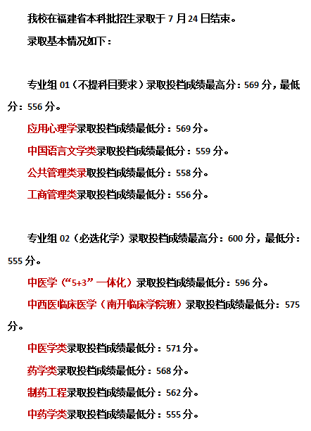 【录取快讯】我校在福建省本科批招生录取结束