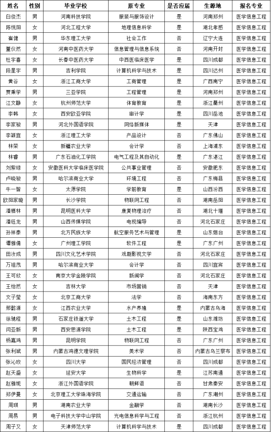 我校2025年第二学士学位报名工作已于近日结束。根据《2025年成都中医药大学第二学士学位招生章程》相关要求,经学校审核,现有39名应(往)届学生通过初审。现将学生信息公示如下,公示时间为7月1日-7月7日,如有异议请向学校反映,电话028-61800097。