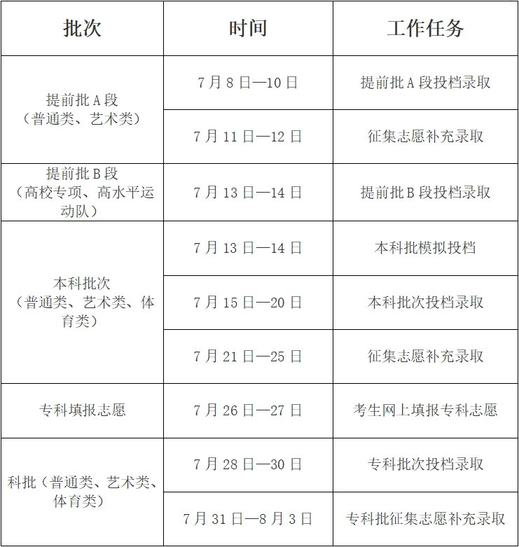 注:招生录取工作日程表如有变动,请以省教育考试院官微官网相关通知为准。