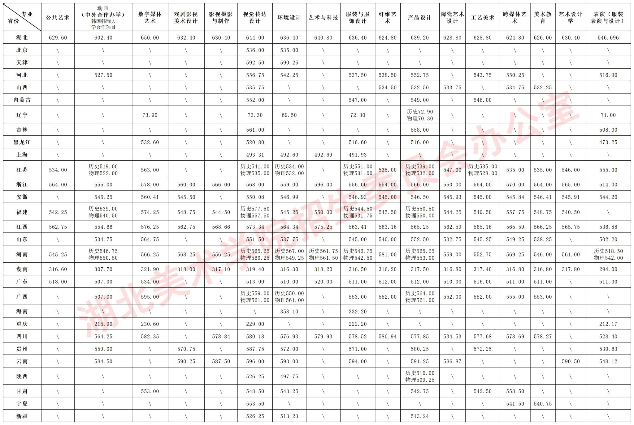 备注:1.标注历史:文科类或首选科目为历史;2.标注物理:理科类或首选科目为物理;3.未标注:默认文科类、首选科目为历史,或艺术(不分文理);4.以上各省各专业投档成绩仅供参考,最终以各省招考机构公布的投档成绩为准。