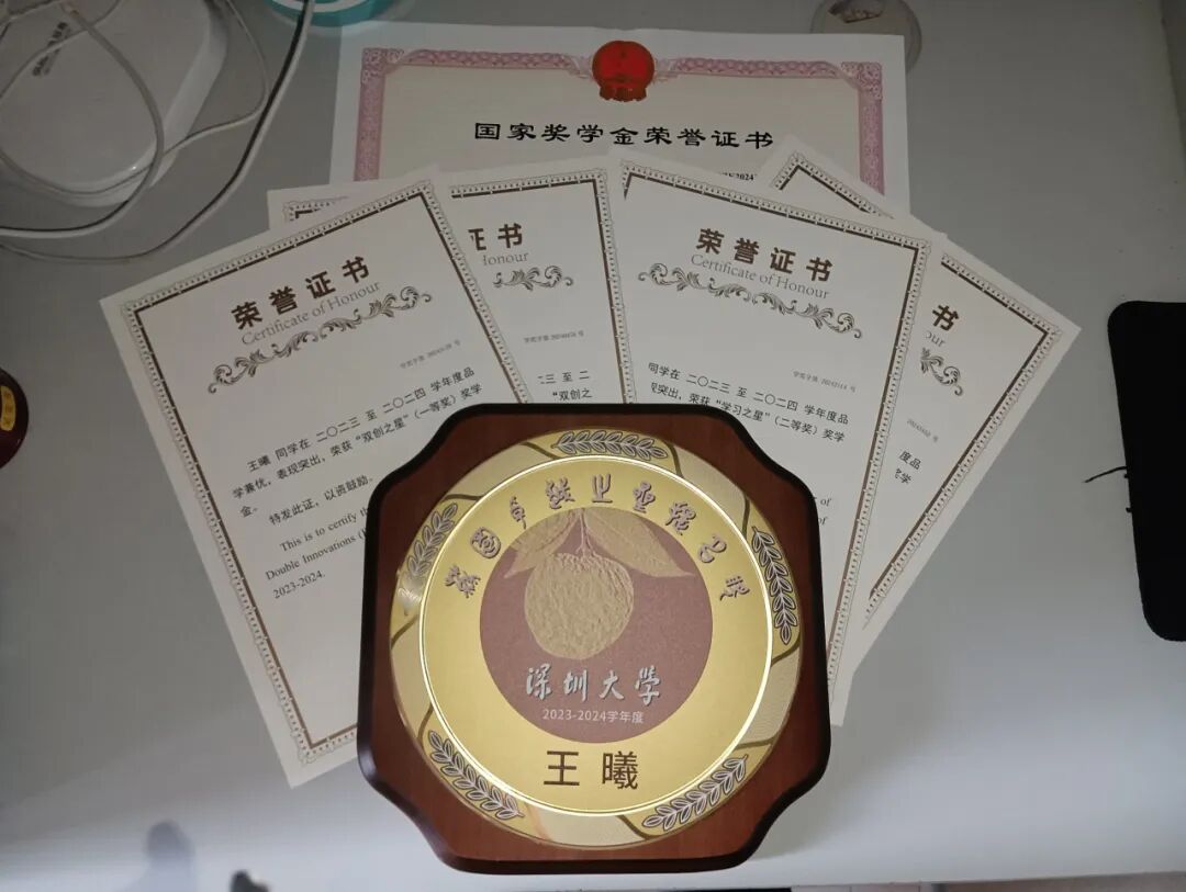 他先后获得国家励志奖学金、腾讯进取奖学金
