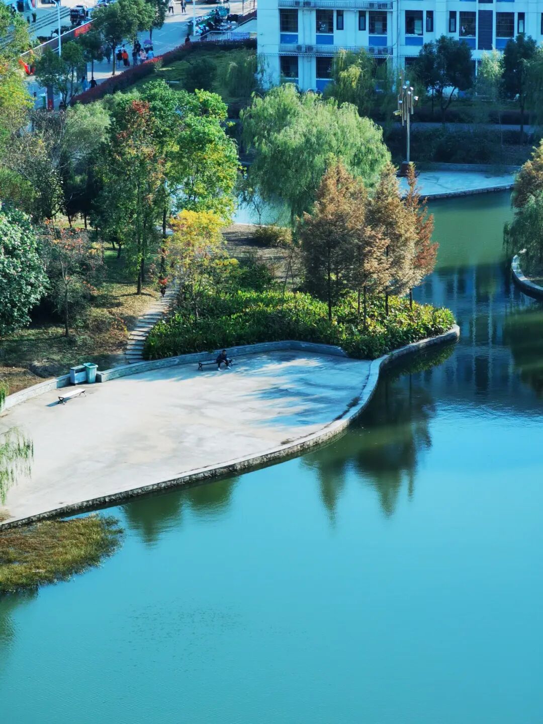 漫步校园,花海绚烂,四季不息,仿佛是大自然最慷慨的馈赠。宿舍旁,桃花笑春风,夜晚仰望星轨,那份宁静与辽阔,让心灵得以休憩,梦想得以翱翔。小湖边,放学归来的学子们三两成群,或谈笑风生,或静享夕阳,湖面倒映着行政楼与图书馆的轮廓,静谧而庄严,那是知识与智慧的象征。