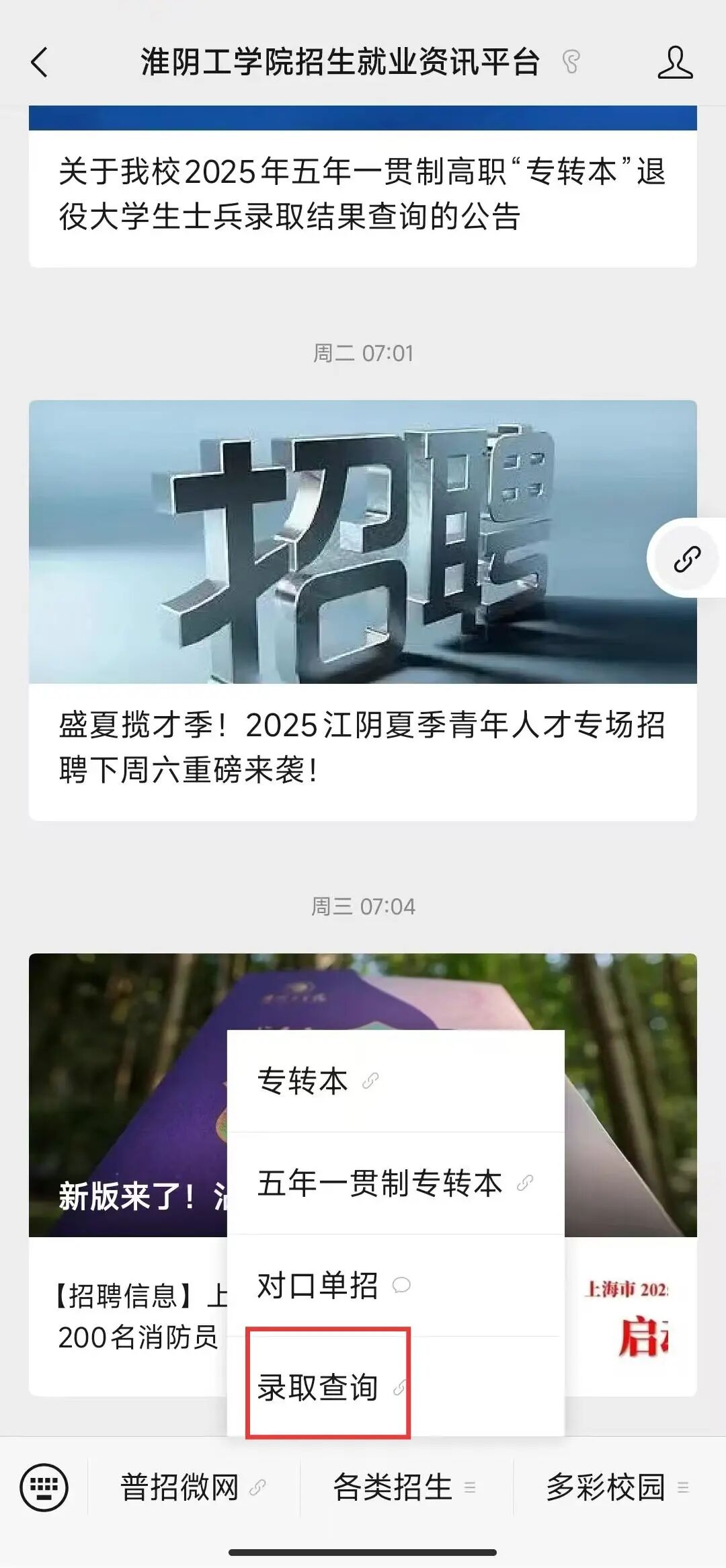 公众号:淮阴工学院招生就业资讯平台
