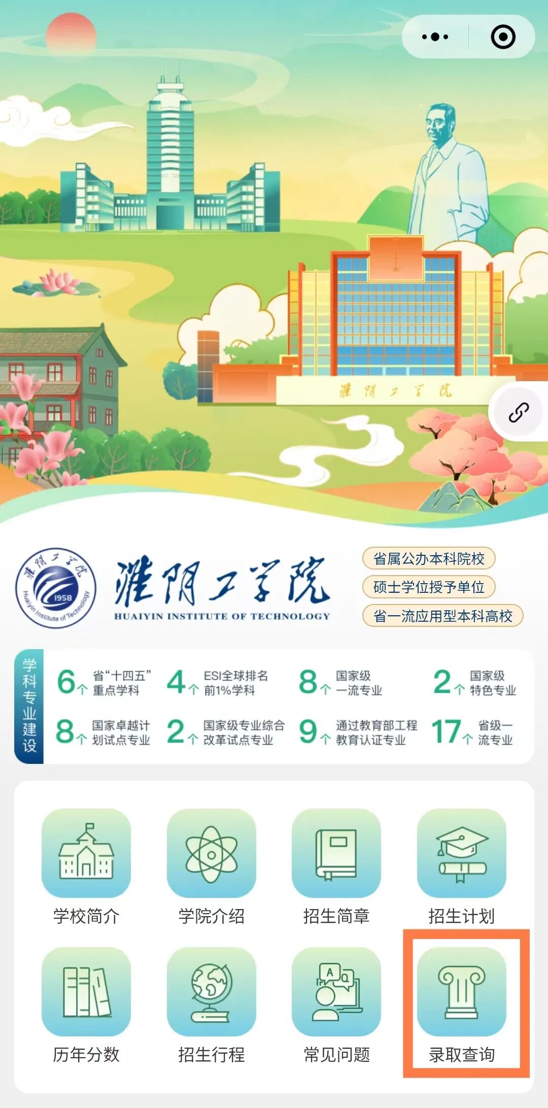 小程序:淮阴工学院本科招生