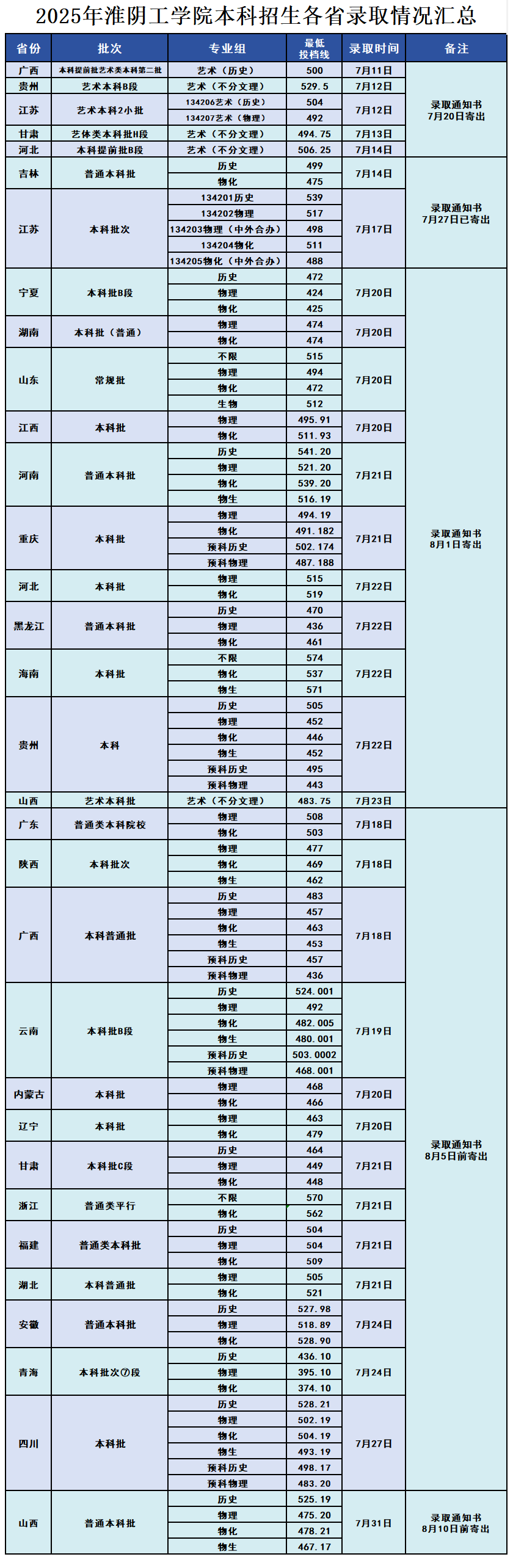 淮阴工学院2025年普通本科录取情况汇总